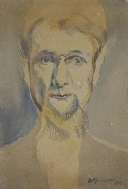 „Autoportret”, 1914<br>akwarela<br>17,5 x 12 cm<br>(Wł. MUT)