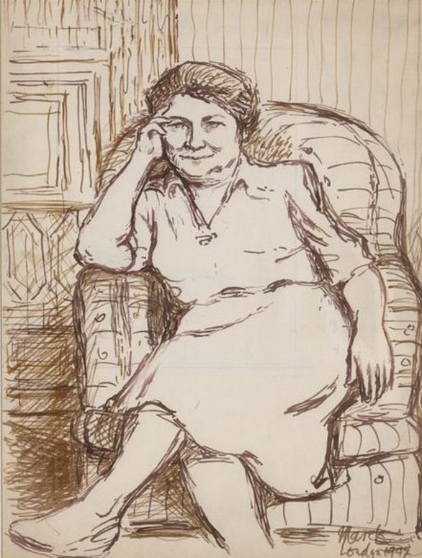 „Portret matki artysty” (Kazimiery Żuławskiej), 1947<br>pisak, tusz i akwarela na papierze<br>(Wł. MUT)