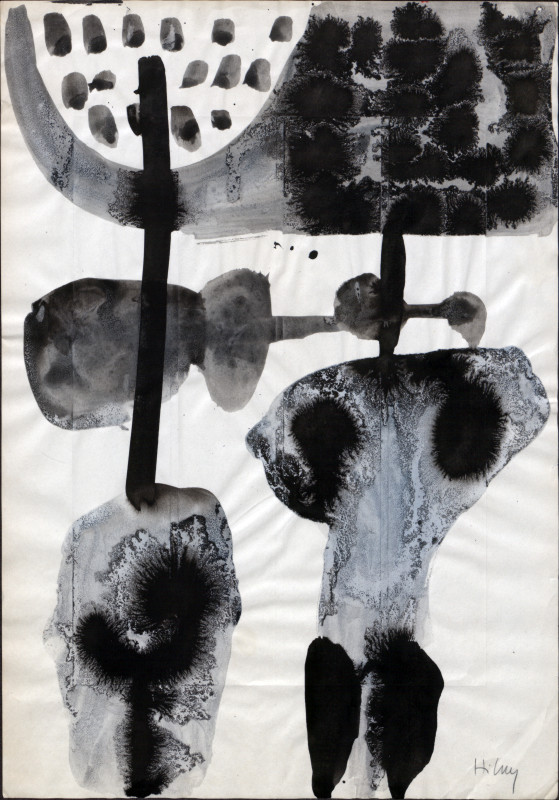 "Dwie postacie", 1961<br>gwasz, tusz, papier<br>41 x 28,5 cm<br>(Wł. prywatna)